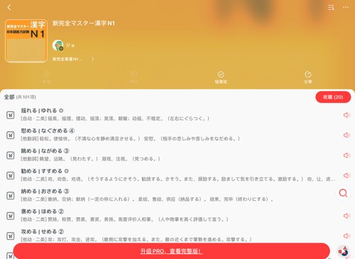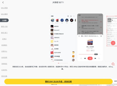 5、使用收藏功能背词需要开通PRO会员,PRO会员售价25人民币,开通后可以自由的创建词汇专辑,实时导入搜索历史,批量导出单词。