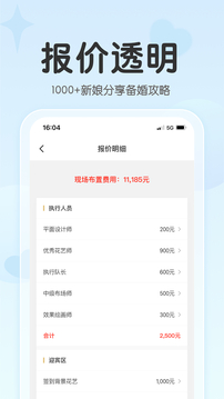 3、所有婚礼案例为真实案例,真实新娘评价,可下载详细的婚庆报价明细,同一场婚礼比婚庆公司最高省50%。
