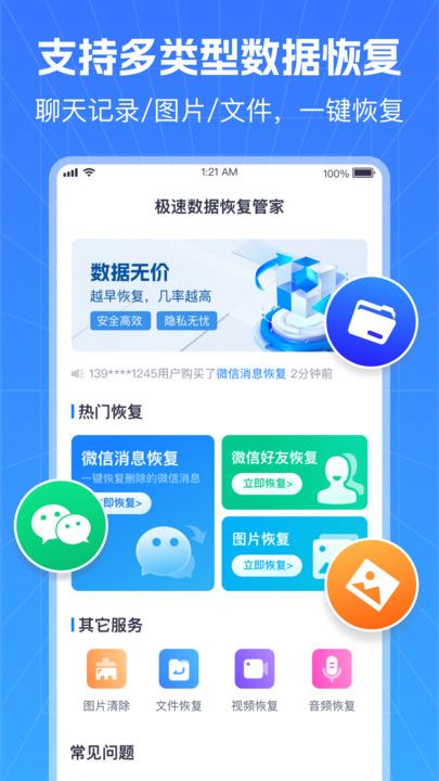 极速数据恢复管家是一款手机数据救星,专门用来帮我们找回那些不小心弄丢的宝贝照片、重要文件或者联系人信息。在这个手机里啥都有的时代,一不小心手滑,珍贵的回忆可能就不见了。别担心,极速数据恢复管家就像个贴心的小助手,用它的超能力帮你把丢失的数据找回来。