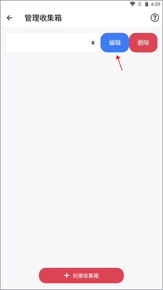 首页左上角点开收集箱,点击右边图标进入收集箱详情,左滑收集箱可操作删除和重命名。