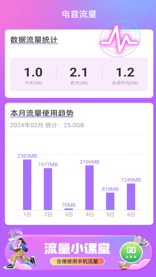 电音流量是一款集数据监控、分析和管理于一身的手机流量监控工具软件。它不仅能够实时追踪用户的网络使用情况,还能通过智能算法为用户提出节省流量的策略。在这个数据消费日益增长的时代,电音流量成为了用户控制流量使用的得力助手。