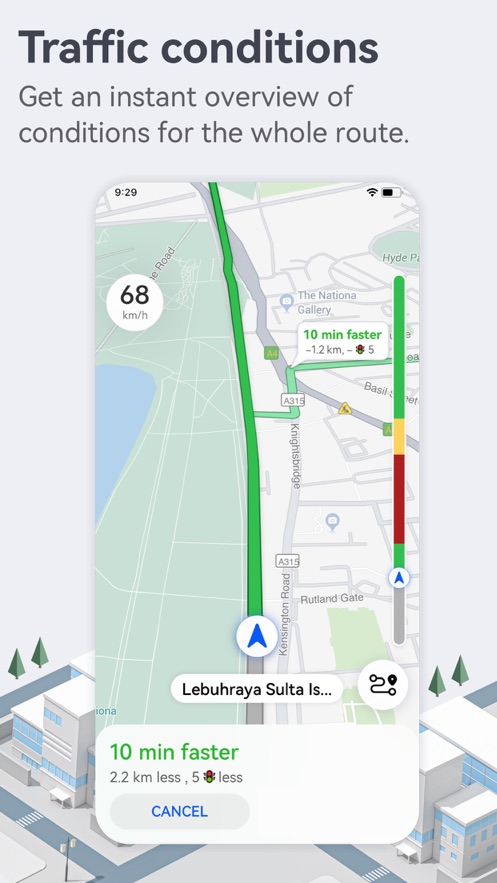 1.软件可以显示实时路况,并且支持2d和3d的视图来回任意切换。