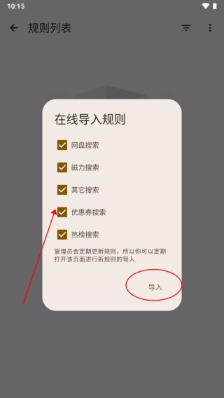 4、勾选需要导入的规则,点击导入;