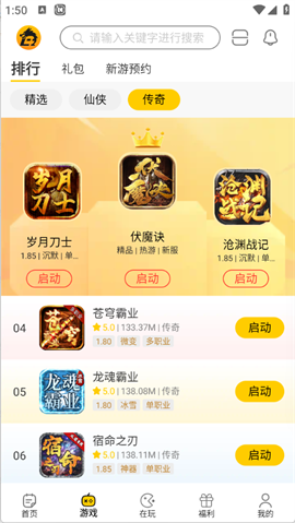 3、“游戏”页面,将游戏进行了详细的归类,包括仙侠、角色扮演等类型。