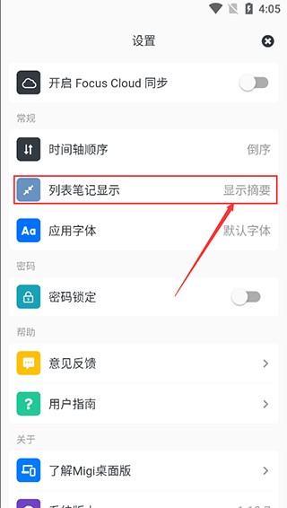 2、进入设置页面,点击【列表笔记显示】。