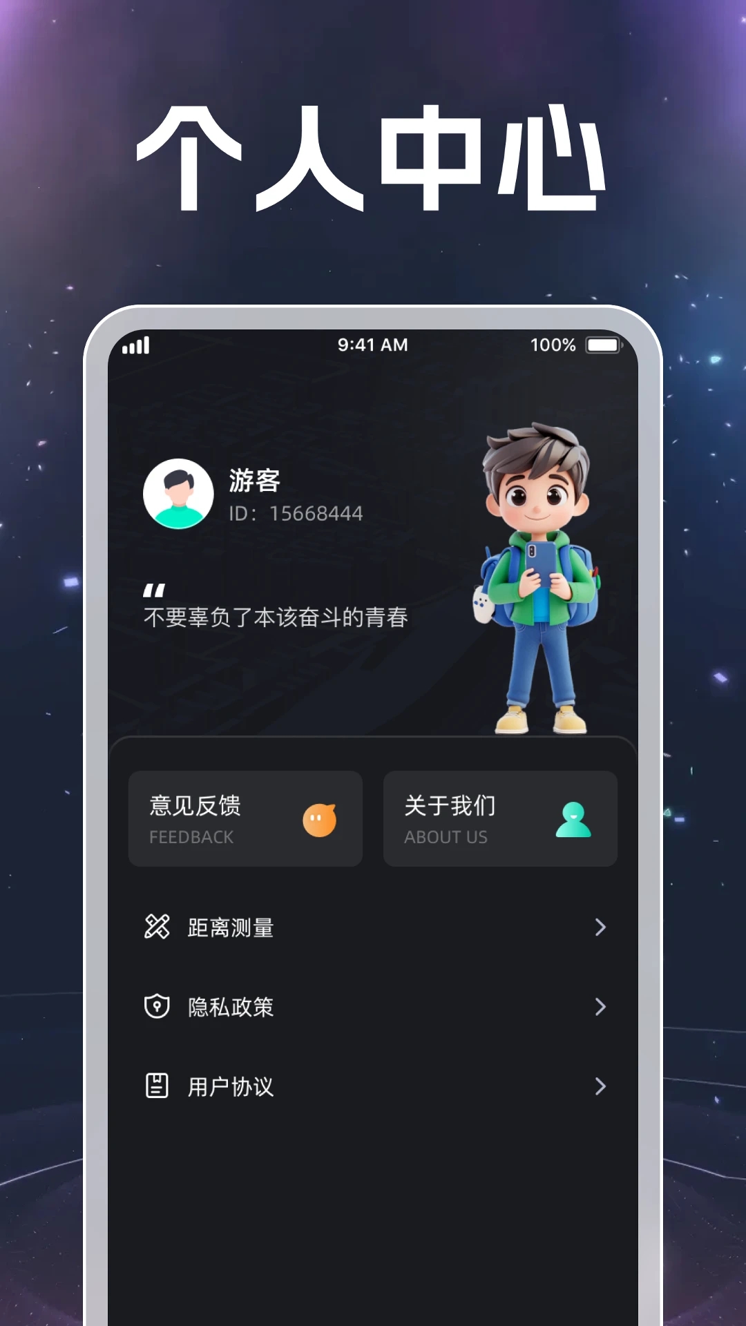 5、在个人中心可编辑意见反馈,还能进行距离测量