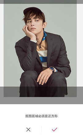 接着选择从相册中选择一张照片,并且用正方形框出你想要扣下来的地方。选择完后点下方的勾。