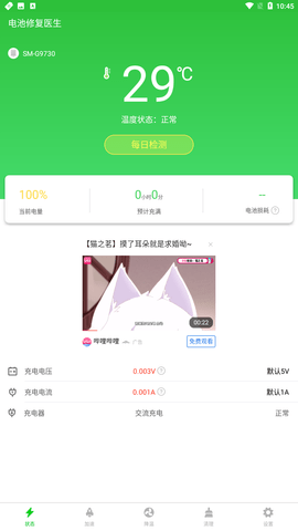 电池修复医生app是一款非常好用的手机助手,可以帮助用户实时检测电池健康,清理手机里的垃圾,让用户及时优化手机电池,减少电池的损耗,增强电池使用寿命。在正常使用情况下帮助用户省电,让你的电池使用更长,是款非常实用的软件!