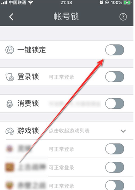 3、打开第一项“一键锁定”;