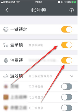 5、打开后登录锁和消费锁就会同时打开。