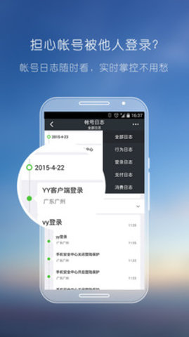 YY安全中心是YY帐号管理工具。它能发送帐号异常通知,让您随时随地可以修改帐号密码,查询帐号的登录日志,为您的帐号提供全方位的安全保护服务。