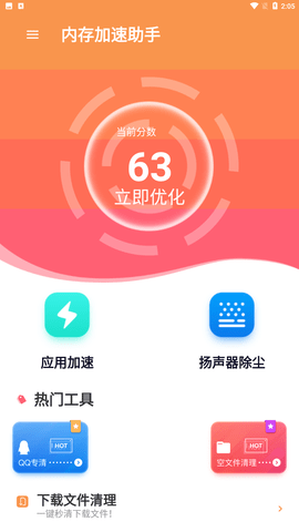内存加速助手手机版是一款简单高效的社交文件管理器,使用这款app能够为我们用户带来极大的便利,丰富的功能多样的内容现在快来跟随小编的脚步一起发现了解解锁更多有趣好玩的内容吧