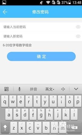 4、进入到修改密码界面以后,需要大家先输入以前智联招聘设置的密码,当输入正确以后,就可以输入新的万行教师密码,然后点击确定按钮,这样下来,万行教师的帐号密码就被成功修改了。