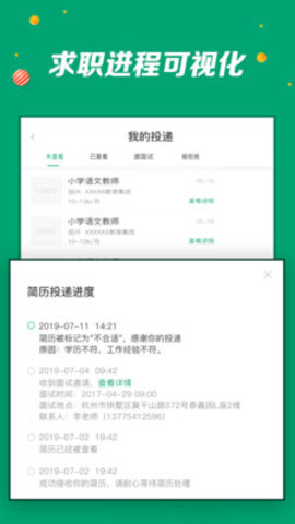 投递后单位对简历的处理情况,实时更新,一目了然,面试or拒绝都能第一时间得到反馈