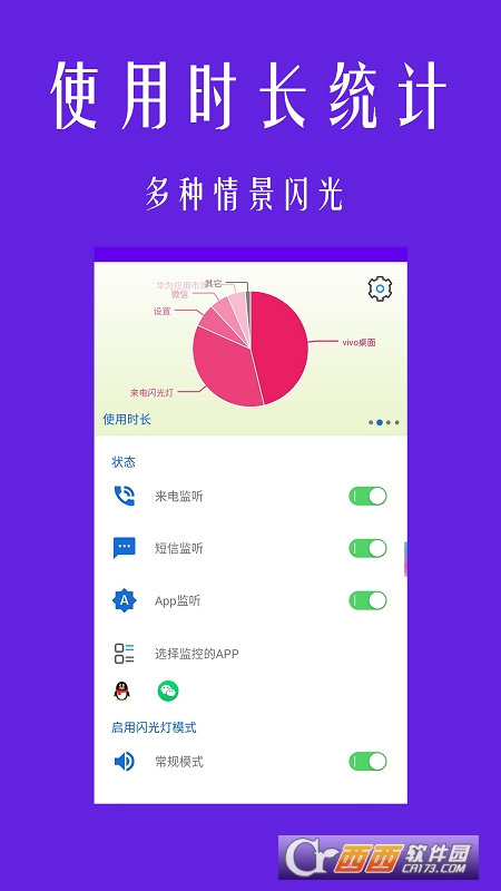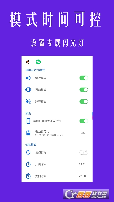 app闪光:选择重要的app,即可在收到消息的时候闪光提醒,工作消息、重要客户第一时间回复。