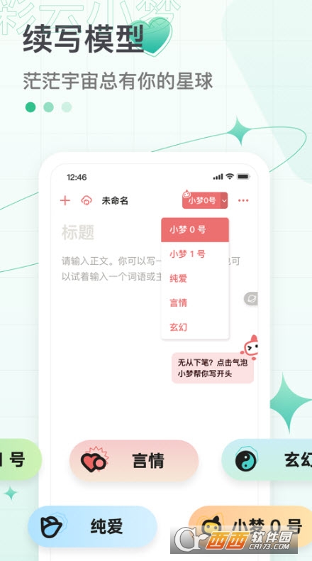 6、当你无从下笔的时候,点击气泡小梦可以帮你写开头,让写作更容易。
