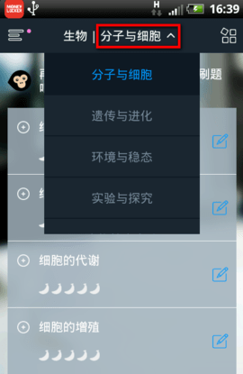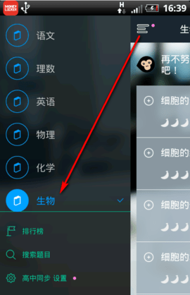 1.猿题库使用方法很简单,首先我们进入猿题库,点击左上角的图标,选择科目。