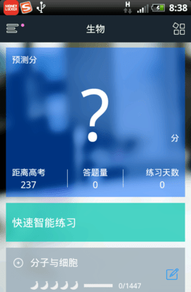 2.猿题库中会有距离高考的时间,提醒大家努力学习,然后我们可以选择快速智能练题或者分章节练习。