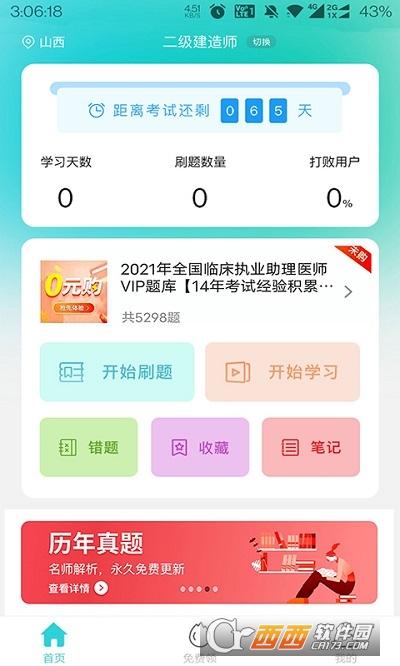 3、包含开始刷题、开始学习、错题、收藏以及笔记五大核心功能。