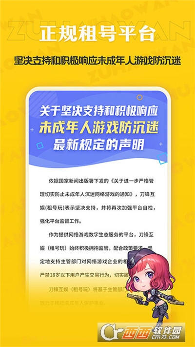 租号玩专业版是一款非常专业的手机游戏账号租赁服务应用软件,租号玩专业版app为用户提供了各类高端游戏账号,可在线租赁账号玩游戏,费用低至一元。感兴趣的朋友欢迎使用鳄斗163手游网!
