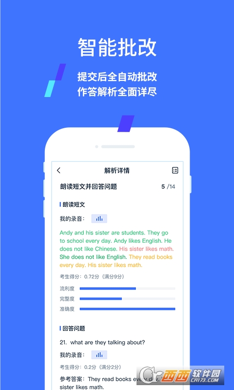 易辅来产品是一款专门针对英语听说人机对话考试的产品,应用当前先进的智能语音评测系统,支持智能纠错,能够通过标准度、完整度、准确度等多维度评分,精准量化评测学生口语能力!