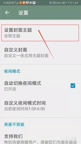 进入设置页面,点击设置封面主题。见下图