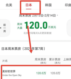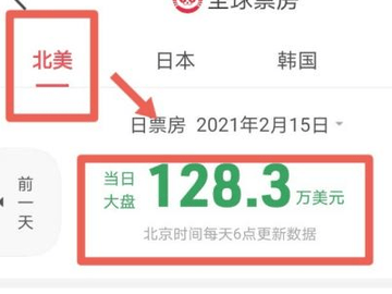 进入到全球票房页面后,首先我们看到的是北美票房,详情如下;