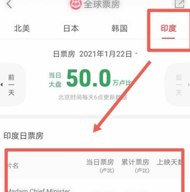 最后用同样的方式,可以查看韩国、印度的当日实时票房。