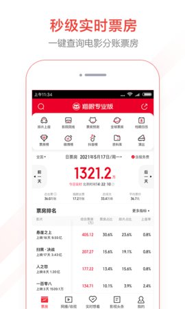 2、秒级实时票房:秒级实时票房查询工具,每分每秒掌握电影市场实时动态;