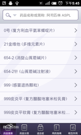 药品说明书来自药品生产厂家,数据量大,内容权威。用户可使用商品名、通用名、疾病名称、形状等信息来检索药品说明书。