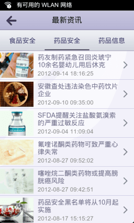 不定期推送“食品安全”、“药品安全”、“药品信息”三类资讯,帮助医生获取最新药品信息。