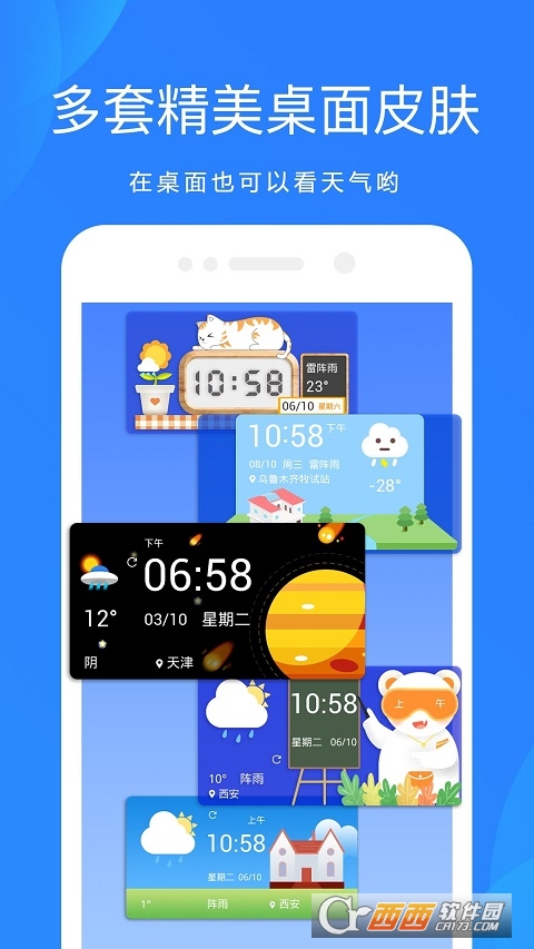 【桌面天气】提供4种不同大小的桌面天气主题,打开手机即可查看天气;
