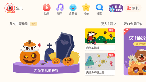 独家播放风靡全球的Super Simple、猜猜我有多爱你、奥趣多、奇妙球家族等精品启蒙动画。