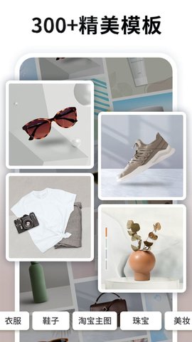 快咔设计手机版提供了超多模板、阴影描边、倒影等功能,不管是衣服、鞋子、珠宝、淘宝主图这里的模板都是适用的,支持一键去除图片的背景,可以在上面完成各种创意拼贴。