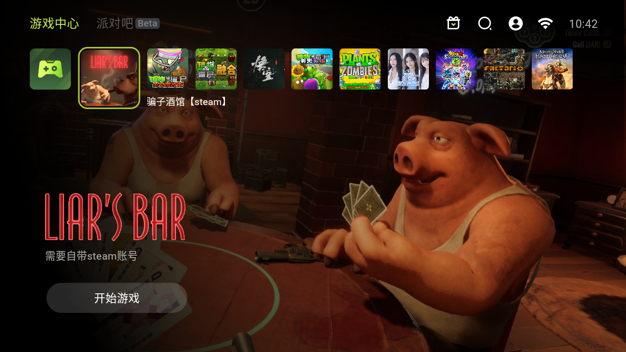 1、下载安装好软件后,进入软件可以看到包括推荐、游戏库、联机专区和收藏频道,选择浏览喜欢的游戏。