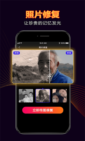 3、智能修复照片划痕破损部分,针对老照片、网络照片、低像素图片中五官模糊的照片进行清晰,让照片保持原始较佳状态。