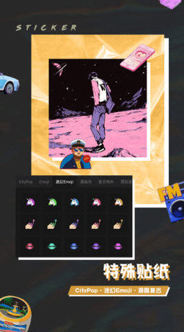 1、拥有特色贴纸、颜色剔除、涂鸦、文字以及颜色调节等功能;