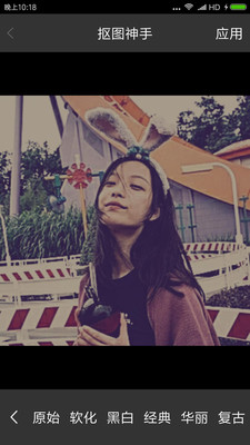 抠图:在照片上画一个圆形,能把在圆圈内的特定人物或物体自动抠出来。如果想要增加被遗漏的部分,可以直接用“小剪刀”来剪贴选区!想要清除已抠出来的照片中某一个部分,请使用橡皮擦!如果难以自动抠出选定的部分,可以直接用“小剪刀”来剪贴选区上。就能简单地完成到属于你自己的创意扣图!