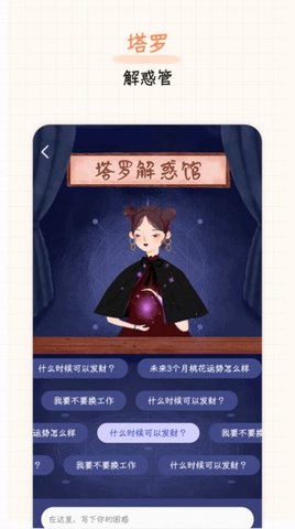 1、是一款手机测试的软件,可以根据自己的需求来进行测试自己的星座性格、情感、命运等等。