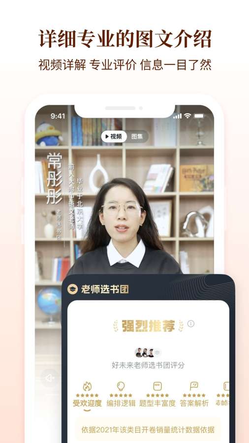 图书详情页焕新,配置图书视频介绍和老师选书团专业评价,直观呈现图书信息,帮助您快速了解图书信息。