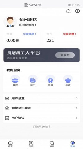 佰米职达app作为一款新型的招聘软件我们用户在使用过程中能够享受到极大的优惠,各种vip功能随便使用让我们快速的解决招工难找工作难的局面,现在还在找工作的你快来下载吧