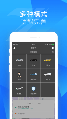 2、一键呼叫出租车,快车,专车等多种车型;
