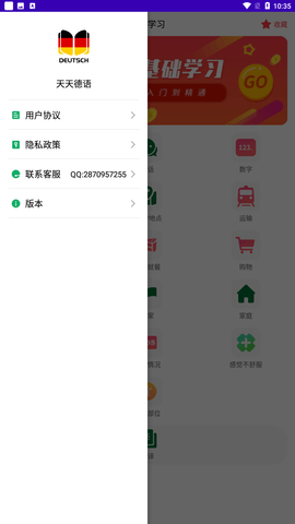 3、是一个关于日常德语口语的软件,包含生活中称呼语,问候语,祝贺语,应答语,征求语日常用语。
