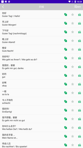3、全部音标发音均选用原生态的规范读音,集生活起居术语于一体。是一个十分强劲的德语学习手机上APP。