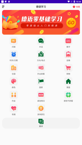 1、在这里汇集了德语相关内容学习,包含了口语多方面内容学习,拥有多种场景对话内容可以播放跟读学习。