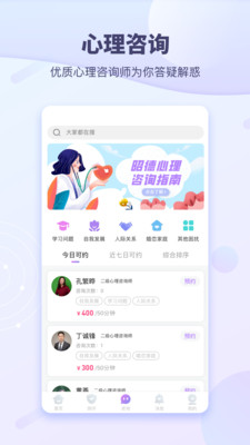 平台提供心理咨询、情感倾诉、心理科普、心理测试、心理课程、情绪日记、助眠音乐等服务,做您口袋里的心灵导师。