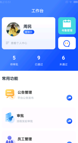 3,同时软件中对于所有的管理人员都进行了非常完善的考勤系统管理,所有人员的工作时间以及相关的业务流程审批还有打卡都可以来通过软件完成。