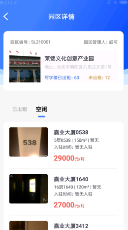 2,所有的园区房屋和办公楼的出租信息以及正在租赁过程中的信息和合同都会全部收录在软件的后台,方便用户自己查看和管理更多的数据,及时回复问题。