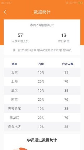 1、驾校的管理人员可以通过然旷驾助校app在线查看平台的招生数据、教练和学员的请假申请;