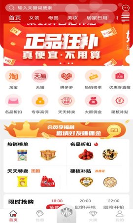 1、拥有大量优惠券,用户可以领券再购物;